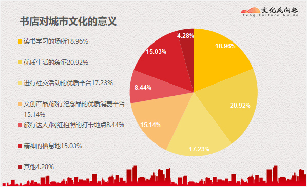 在读书氛围上,超过3成的消费者偏向于“阅读与休闲结合”,这一调研结果与近几年书店的发展趋势高度吻合。凤凰网《文化风向标》发现,虽然定位依然还是“书店”,但是在书店的经营空间内,已经出现了越来越多的与书相关或不相关的其他休闲内容,就连新华书店都开始尝试转型之路,在部分门店参照台湾“诚品书店”模式打造概念书店。常规类的包括文创、咖啡、音乐等,非常规的品类则包括艺术品、服装、餐饮等等更为多元化的内容。