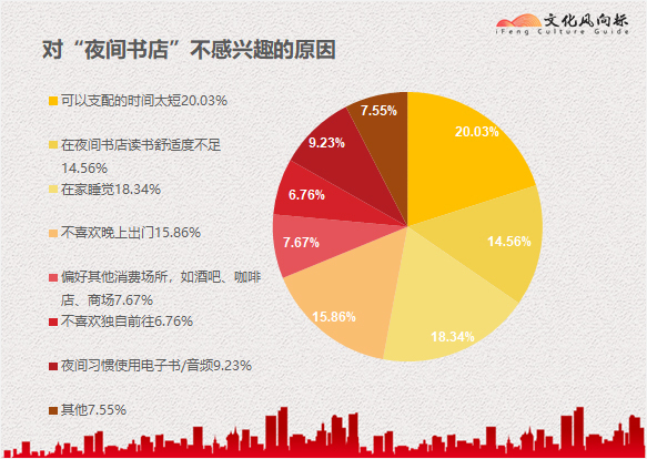 调查结果显示,“可支配时间太短”、“在家睡觉”、“夜间习惯使用电子书/音频”成为人们选择不去夜间书店的最重要的几大原因。