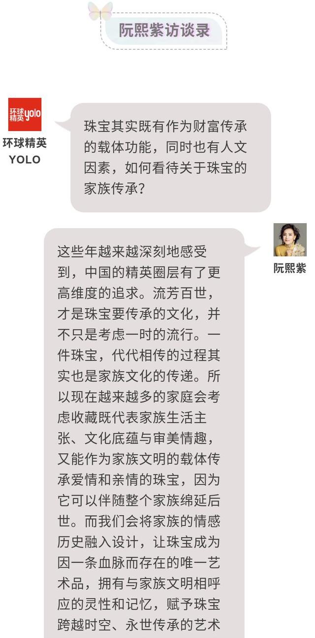 阮熙紫说做企业不能浮躁,“当你想的是能为世界做多少时,精神格局会给你无限大的力量支撑。”将其回归到珠宝设计的理念上,那就是不以堆砌彰显奢华,只用技艺来演绎灵性,因为文化和艺术本身就具有打破时间与空间的崇高力量。
