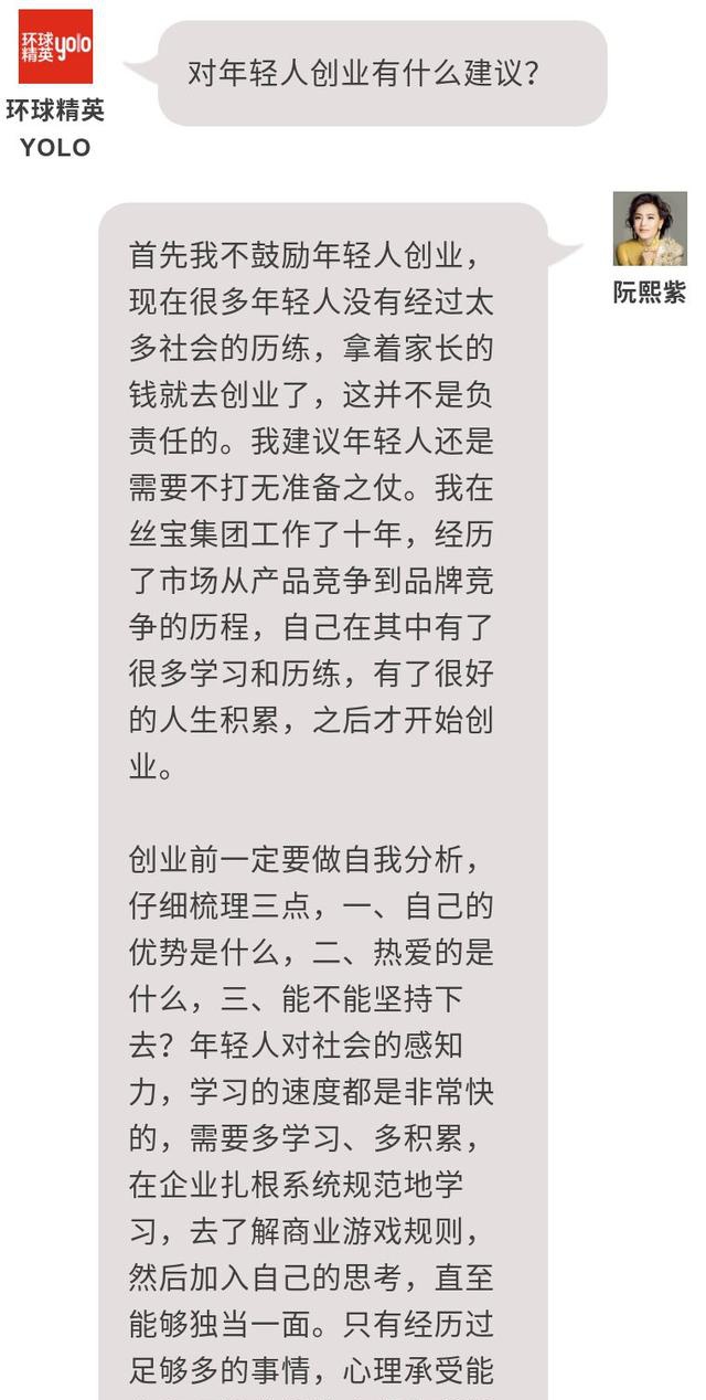 在创业的过程中,她难免被外界质疑:“传统手工工艺已经OUT了,多土啊,现在谁还带啊?”“你做这个,不成先驱就成先烈。”开弓没有回头箭,阮熙紫一旦开始,就会把事情做成她满意的样子,即使遇到再多困难,她会更专注去找寻克服困难的方法。她的身上有一股韧性,雷厉风行,这是她职场经历的痕迹。不断地去追求以往不能做到的,或者不能去尝试的,她很享受这个过程,因为这件事是全新的创造。