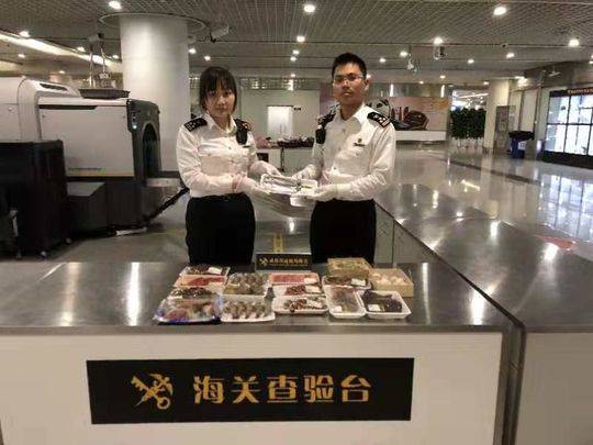该批海鲜是从一名由日本东京飞抵成都的外籍旅客行李中截获的。该旅客在入境时选择无申报通道通关,海关关员通过X光机判图发现其行李箱内疑似有海鲜产品。经开箱查验,共查获冰鲜虾类、螃蟹、多宝鱼、贝类、牛肉等,共计14盒,另有两盒鲜鸡蛋,部分鸡蛋已经破裂。据该旅客的中国家属介绍,这些海鲜和鸡蛋等物品都是从日本购买的,准备带到中国给亲属做一顿海鲜大餐品尝。由于当事旅客无法提供相关检疫证明材料,根据《中华人民共和国进出境动植物检疫法》及其实施条例等有关法律法规规定,海关关员对该批冰冻海鲜等物品依法予以截留。