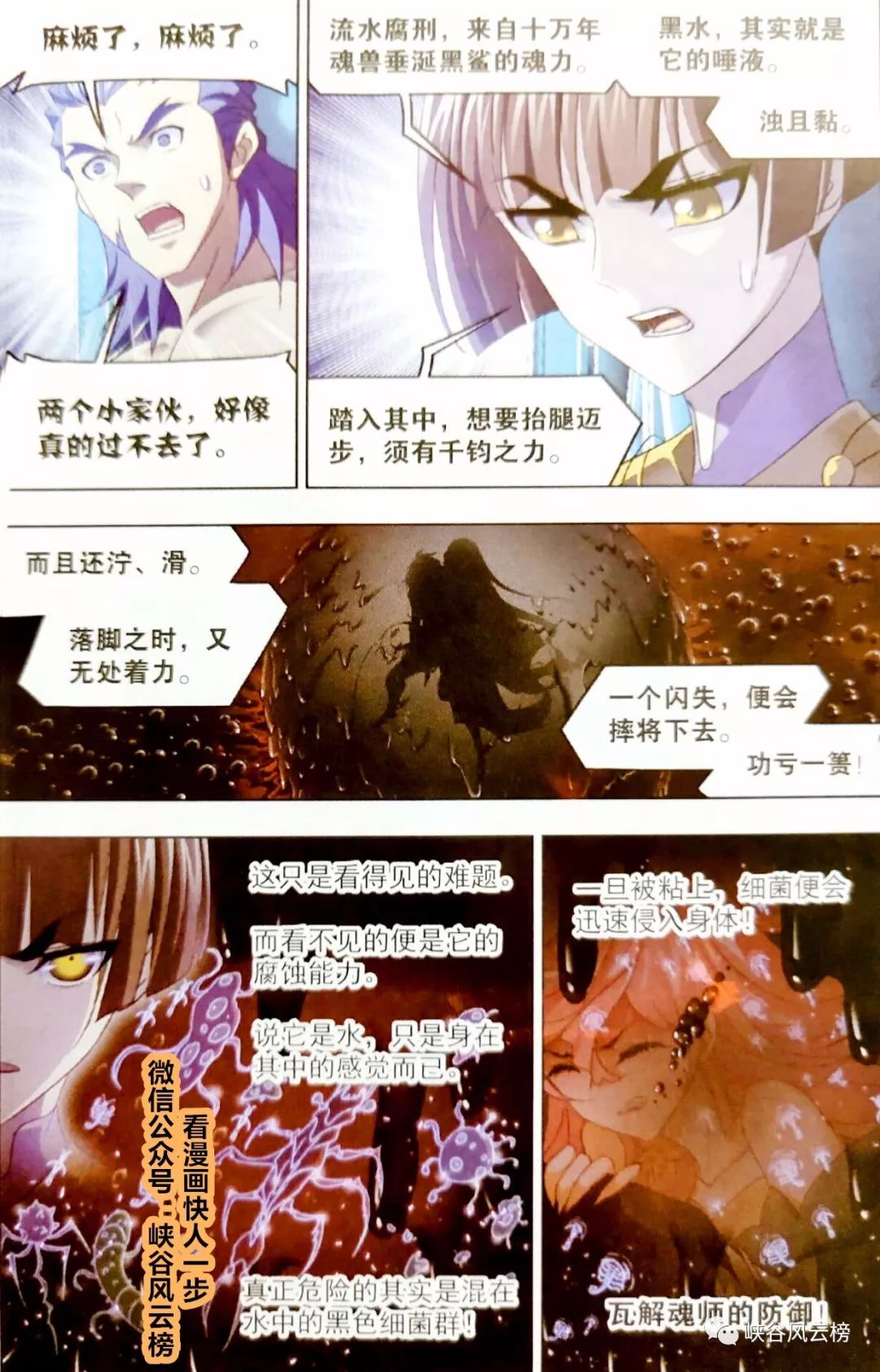 唐三的落脚之处,没有地方着力,稍有不慎,就会倾倒。然而看不到的则是这些黑水里面的细菌,能够侵蚀魂师的身体,吸收魂力。