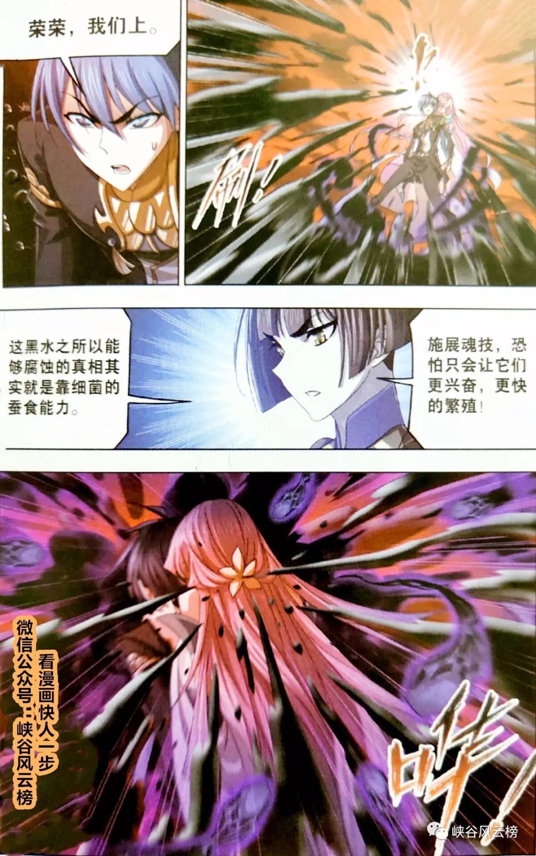 宁荣荣身为辅助系魂师,其防御是最弱的存在,黑水起初会侵蚀人的肌肤和骨骼,然后进一步的吸收人的魂力,最终让身体产生不可逆转的损伤。唐三开启杀神领域,准备强行突破。