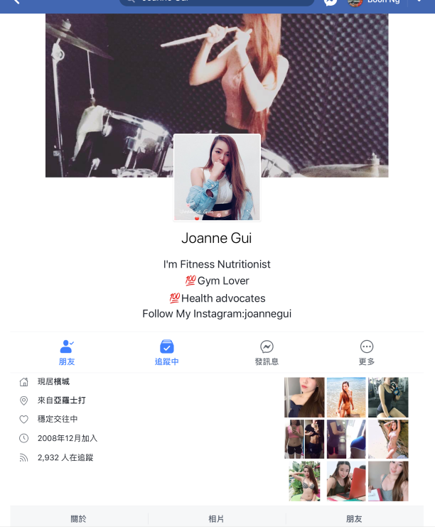 Joanne Gui的脸书帐号有近3000名网友在追踪。