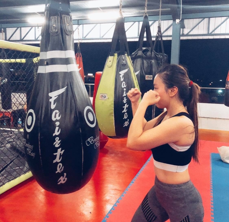 练习拳击的这一刻,暂时挥别娇滴滴的样子。