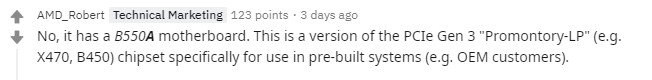 Reddit的水友发现自己购买的机器中使用了一块名为"B550AM GAMING"的华擎主板,他以为是尚未面世的B550芯片组出现了,所以在Reddit上发了一个帖,帖子引来了AMD的首席营销员Robert Hallock,他在帖子中解释道: