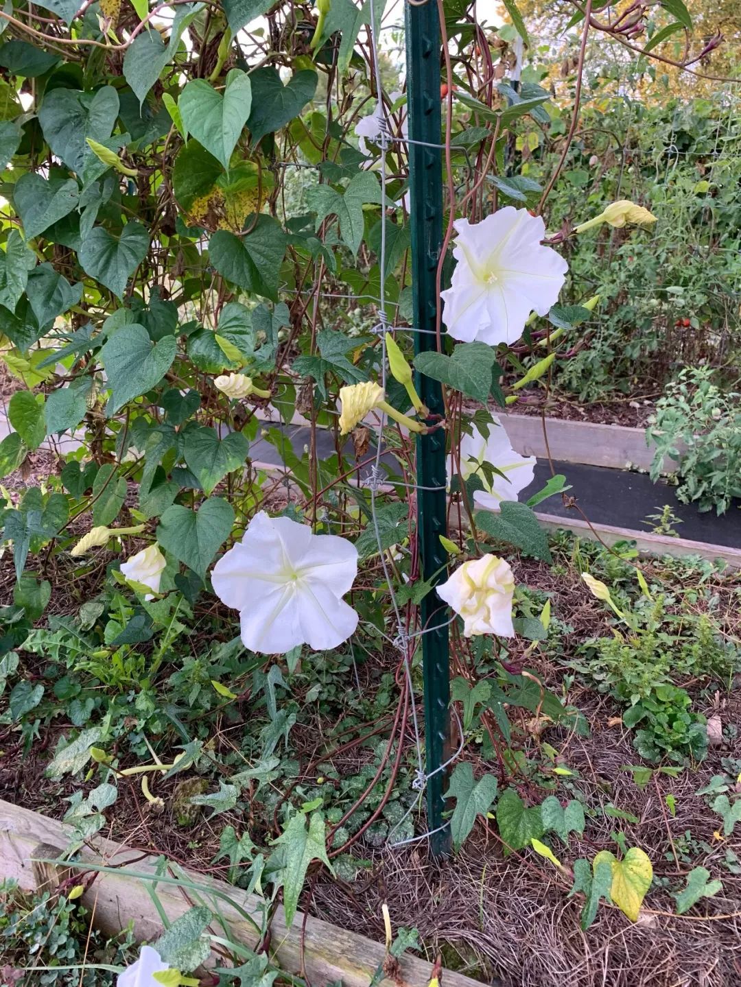 有一些地方还能在野外看到牵牛花的花朵,有的会匍匐在地面生长,有的则会攀附各种支架,向上攀爬生长。我最喜欢牵牛花就是因为它的花期特别长,花朵式喇叭状的,带有鲜艳的花色,只需要买一点种子,就可以种出一大丛。
