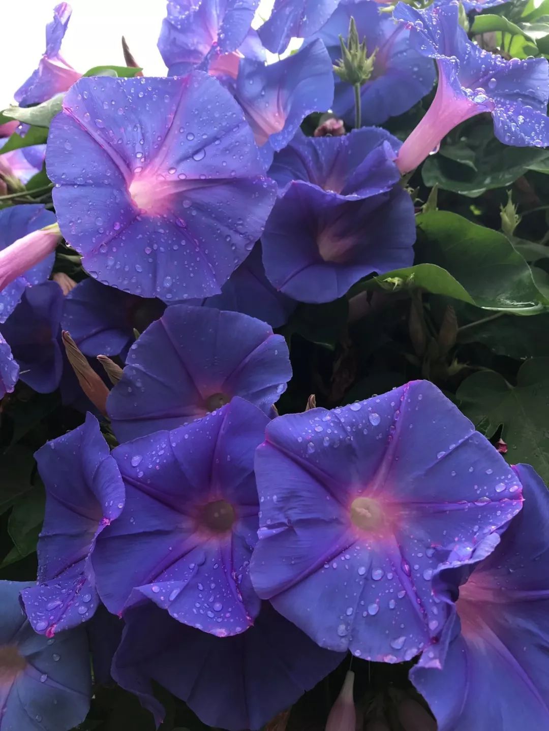 想要让牵牛花都开花,一定要保证光照和肥水充足,环境通风透光。如果是爬藤类的品种,就要注意搭设好支架,让它攀附生长。