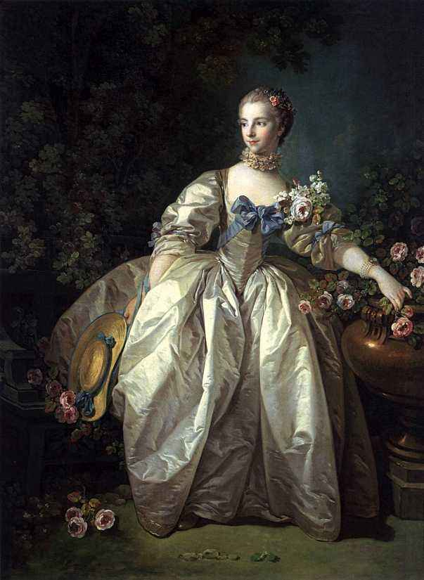洛可可风格下的女性服饰妩媚性感,它保留了巴洛克艺术中体现上流社会奢侈浪漫的艺术风格,又在这样的基础上减弱了巴洛克艺术主要刻画男性的奔放和豪迈。两种艺术虽然都是贵族艺术,但是有着明显的不同风格变化。
