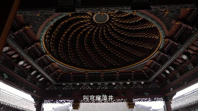 圆形藻井和方形舞台,构成了天圆地方的哲学语汇,还有更实在的科学功能,在这里可以直观感受到余音绕梁的效果。