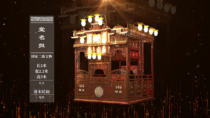 担的正面左右设门,供堂名艺人出入,担内有桌椅,可容八人围坐,179个构建、 112件饰品、1000多个榫卯,一般人根本无从下手,拆装都是高超的技术活。
