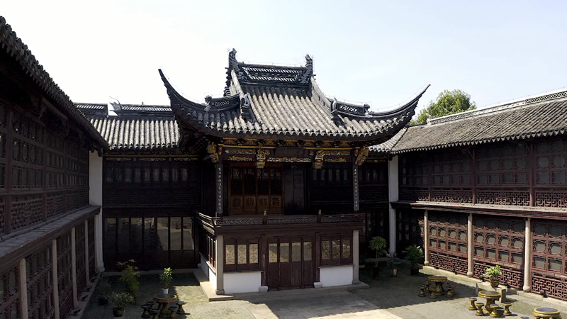 坐南朝北的这座古戏台是中国昆曲博物馆的建筑精粹,戏台的正上方这片华丽的建筑,叫穹窿藻井。古代匠人们的高超技艺,使屋顶除了遮天蔽日的作用,还成为“技艺载道”的展示舞台。