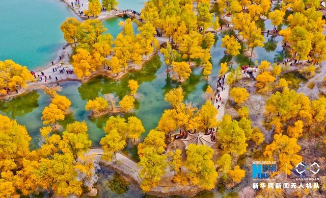金秋十月,甘肃省酒泉市金塔县沙漠胡杨林景区披上了“黄金甲”,一眼望不到边的胡杨,如同一把把火炬,“点靓”了炫目多彩的秋天。新华网发 (王将 摄)