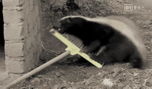 你以为他是个只知道到处惹事挑衅的莽夫?那你就错了,蜜獾是少见的懂的利用工具以及和其他生物配合的动物。并且,他特别特别特别的执着!
