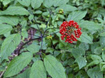 而且人参喜阴不喜涝,生长在有高大乔木之下,且杂草丛生的环境中。而人参开的花为绿色,果实在成熟之前,也为绿色。只有在成熟脱落时,果实才会呈红色。