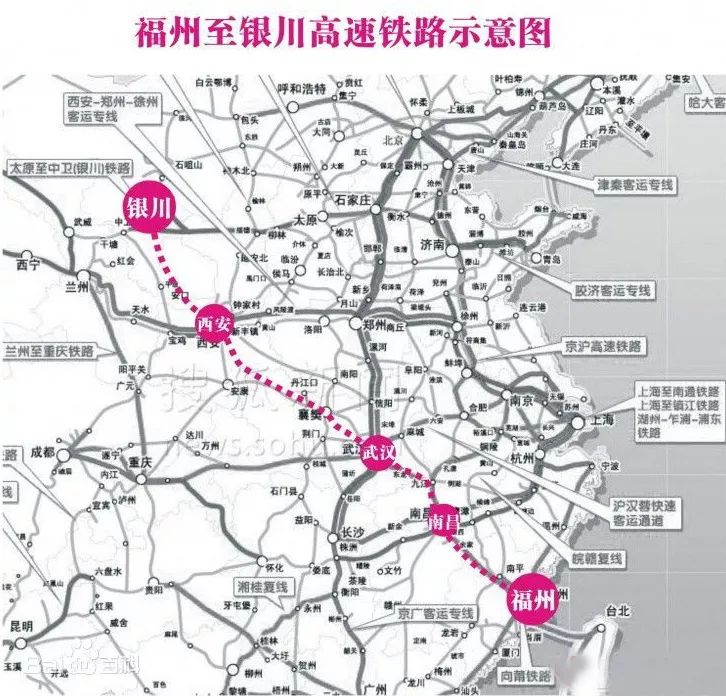 福银客运专线,又称福银高铁,是我国铁路中长期规划的重要组成部分,由银西高速铁路、西武高铁、武九高铁、昌九客运专线、昌福高铁、福厦高速铁路客运专线组成。