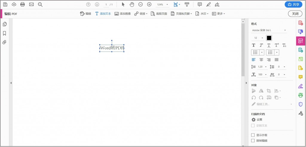 在新建的空白PDF文件中,点击右边工具栏中的“编辑PDF”。然后在“编辑PDF”中,点击上方的“添加文本”。接着我们打开要转换的Word文档,将文档中的内容进行复制,再将复制的内容粘贴到PDF文件中即可。这个方法是简单的,但是完成的效果不是很好哦~
