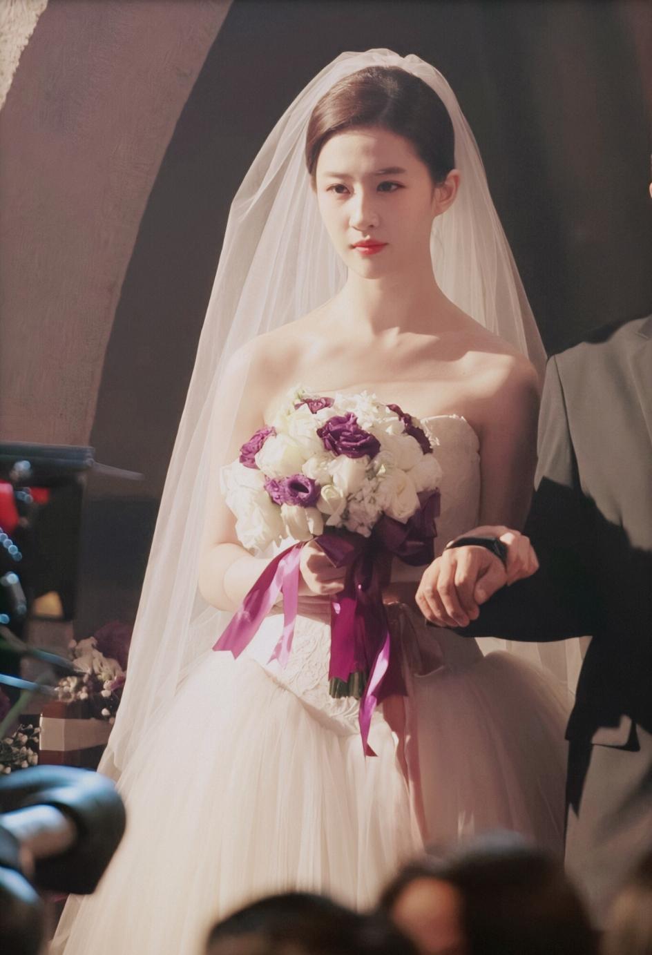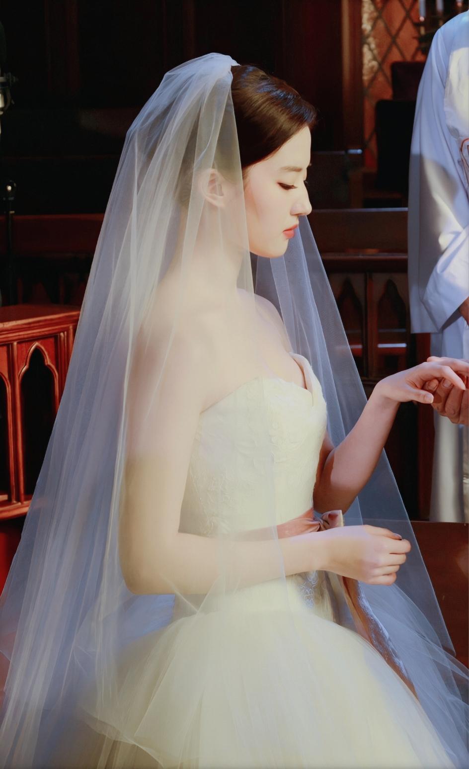 但,女明星不一样,在节目中或电视剧中,我们都可以看到她们美美的婚纱造型。
