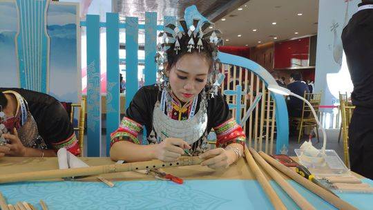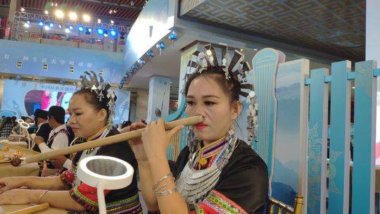 10月18日上午,第七届中国成都国际非遗节“中国民族乐器传统技艺竞技”系列活动正在如火如荼地开展中。一位用鼻孔吹箫演绎动人曲目、身着黎族传统服饰的姑娘,引起了大家的关注——她就是黄海林,一位掌握着古老鼻箫传统技法的85后传承人。
