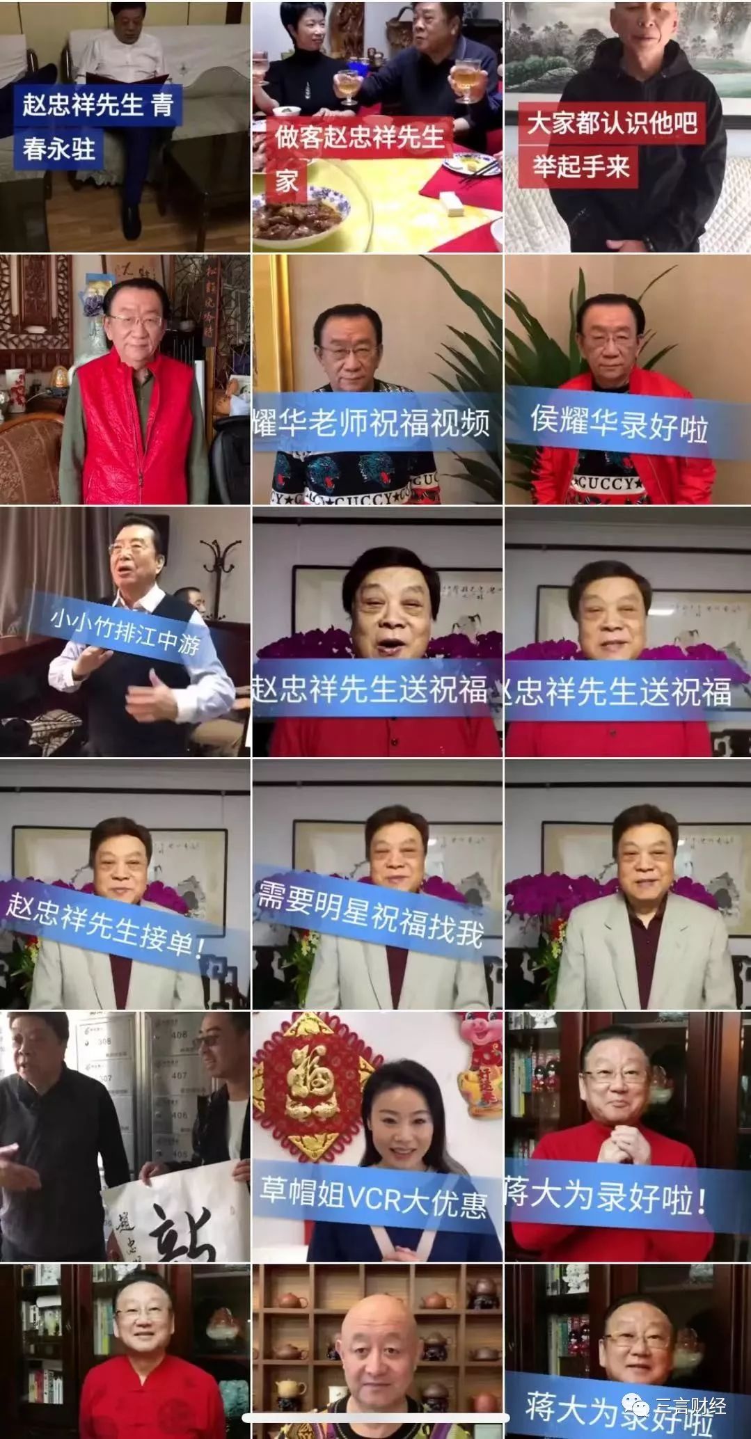 在一位卖家的短视频上,也宣称可以提供侯耀华、蒋大为等明星视频祝福。卖家称, 侯耀华 祝福视频 2800 元 ,蒋大为的 8500 元, 赵忠祥 的对个人 1800元,对公司 3800元 。