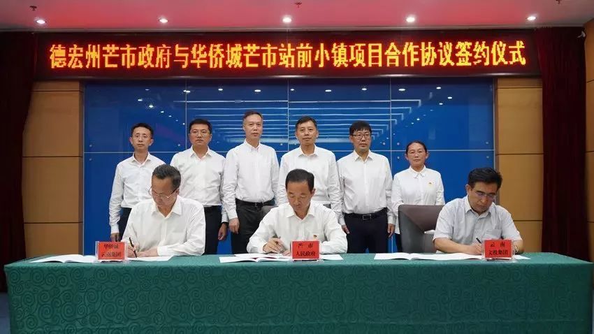 10月10日下午,芒市人民政府与华侨城(云南)投资有限公司(以下简称“华侨城云南集团”)、云南文化产业投资控股集团有限公司(以下简称“云南文投集团”)在芒市会堂新闻发布厅举行了芒市站前小镇项目签约仪式,此次签约是芒市政府携手央企华侨城打造“芒市站前小镇”城市新名片、践行 “一带一路”倡议的最新举措。