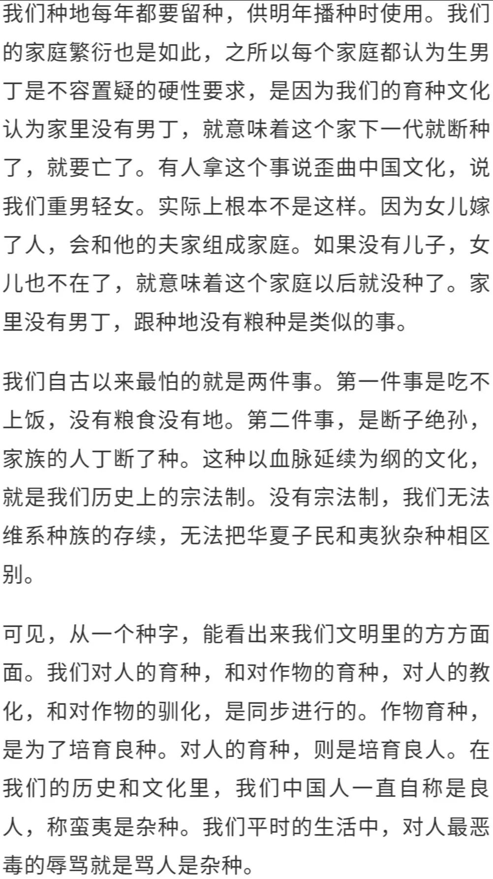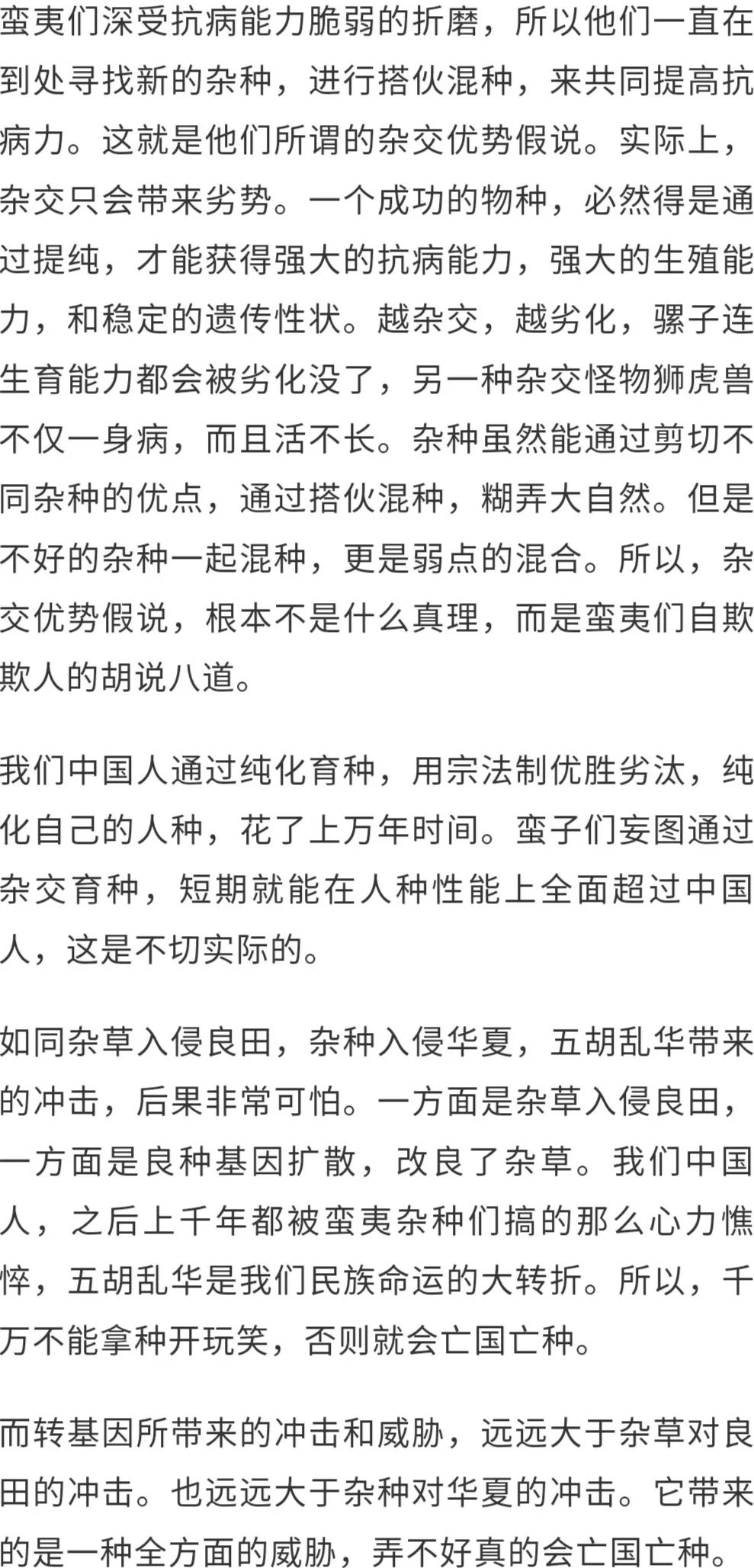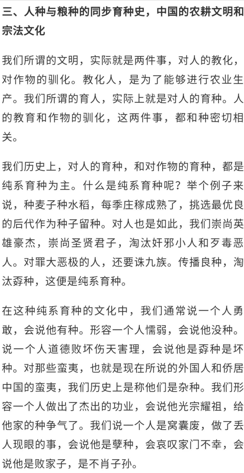 简单说完种的问题,也就是基因的问题,我们接着说,转基因的问题。关于种的问题,我们要明白,人种和粮种的浩大育种工程,在农业文明时代,是同步进行并完成的。本文讲种子,既讲粮种,也讲人种。