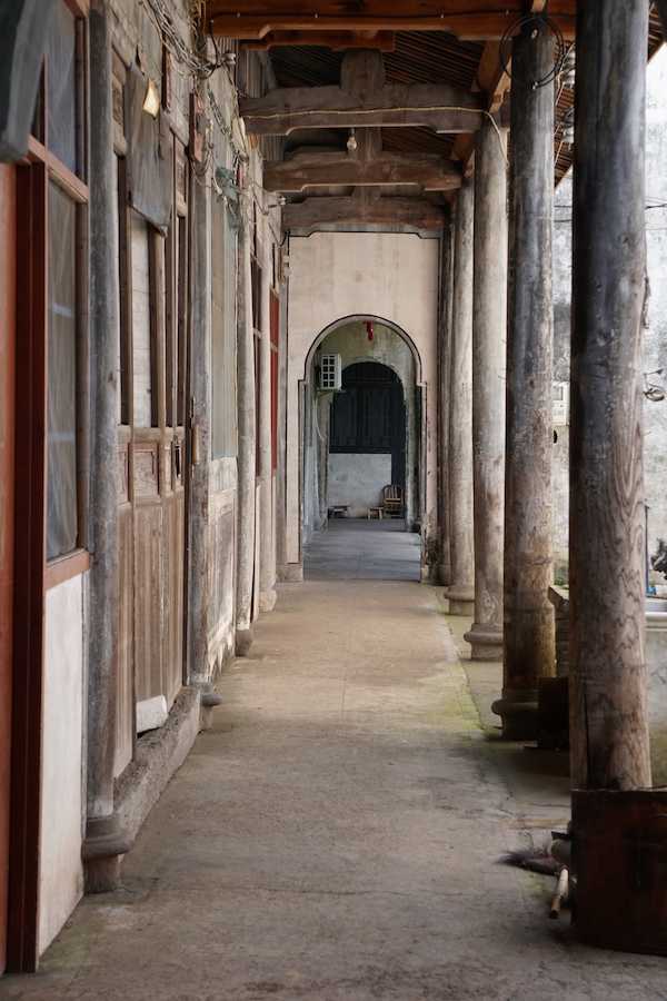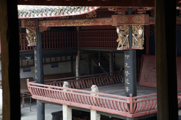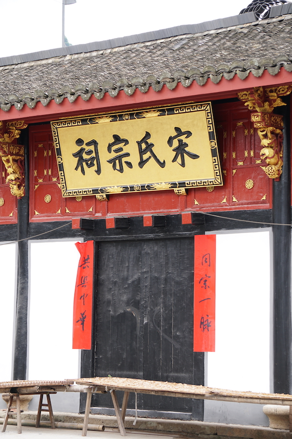 王化的魅力不仅在于村古、景胜、茶香,还在于那些可以将村民凝聚在一起的祠庙。除了地缘的相近,王化的村民在血缘上也基本上是本家。宋姓为王化的第一大姓,在宋家店自然村还留存着一座宋氏宗祠,日铸岭宋氏皆以此为源。宋氏宗祠最独特的是它的外立面。大尺度的外实墙上,上下分成两层,下部白墙,上部做成朱红色的精细木隐门,上下虚实对比强烈而醒目。