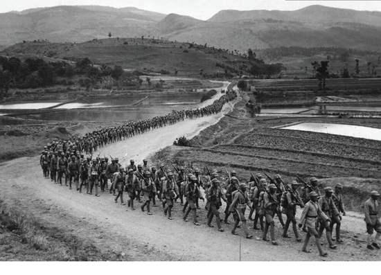 1941年12月8日,日本发动太平洋战争的第二天,出动大批军舰和飞机,掩护7万精锐陆军在马来亚登陆,向马来亚的英军发动进攻。由于日军占据海空优势,而英军在东南亚又都是没什么战斗力的三流殖民部队,所以英军被打的落花流水,输掉了马来亚战役。随后,日军向缅甸等地发动进攻。