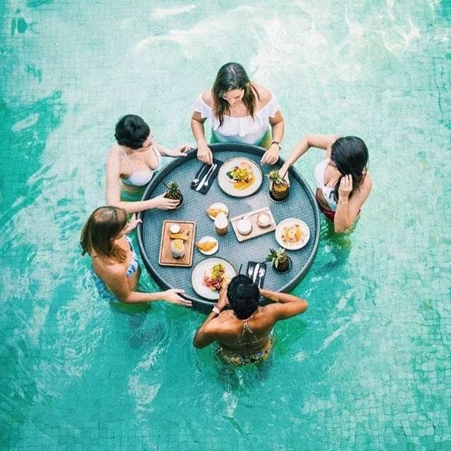 谁说漂浮早餐只能在酒店才能享用,如果只想凹个造型拍拍照,人均100元左右的 Cabina 绝对能满足你,这里是巴厘岛唯一的一家水上漂浮餐厅&酒吧。