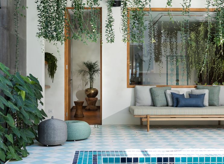 别墅以薄荷绿、海军蓝为整体色调,简约清新, 以定制款家具作为内饰,还有颇具摩洛哥风情的墙壁、地砖等,设计师将传统与现代风格完美融合。