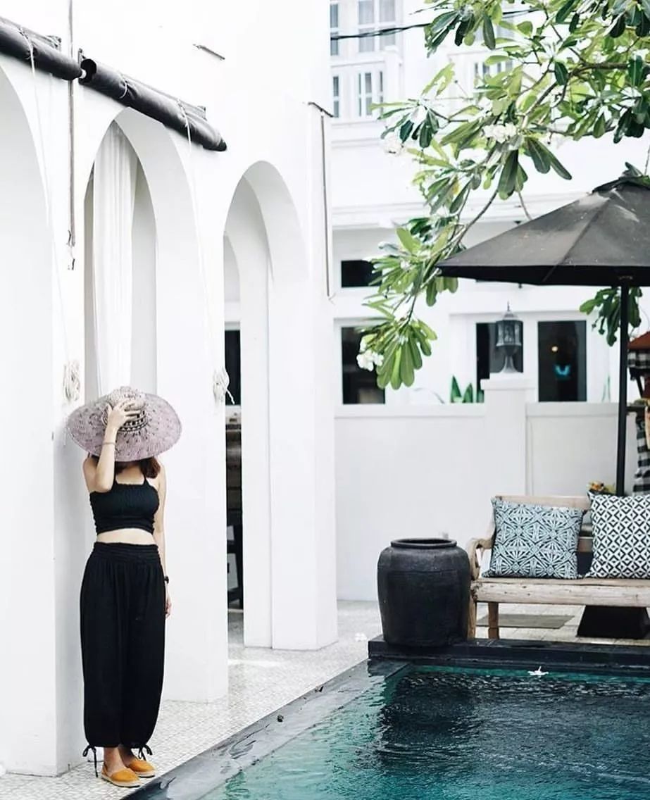 别致的庭园、自带的游泳池,随手一拍就是一张 INS 的大片,很多时髦打扮的小姐姐都坐在外面拍照。