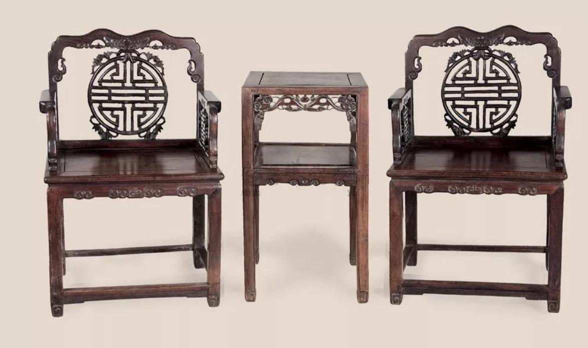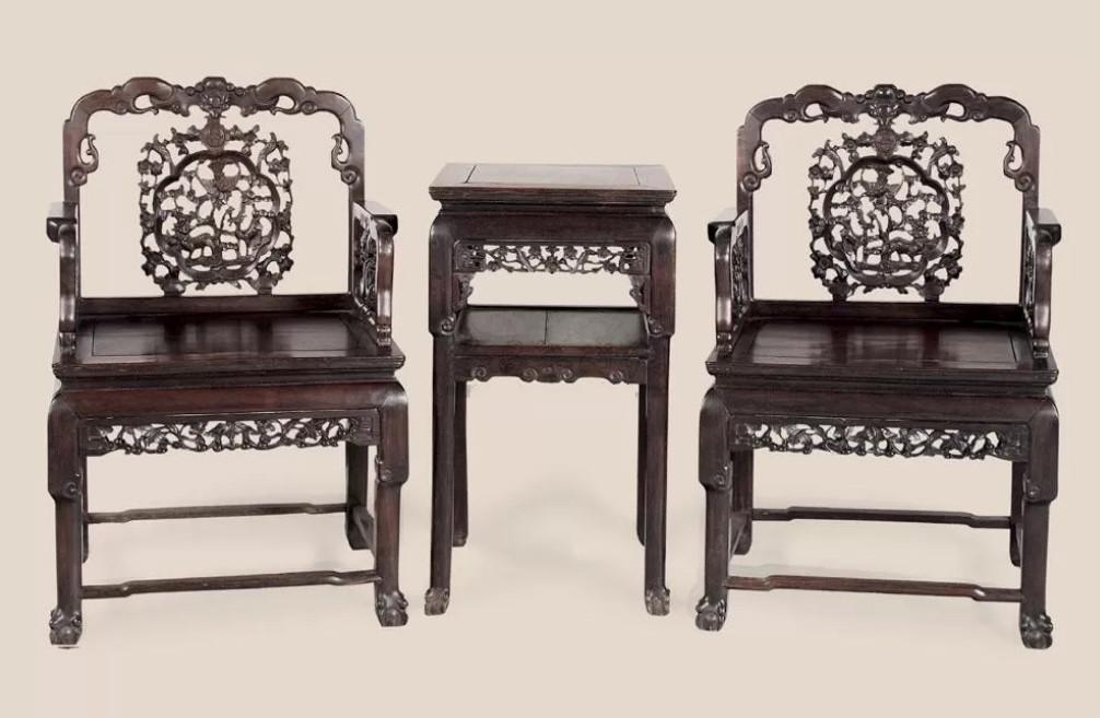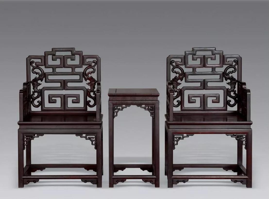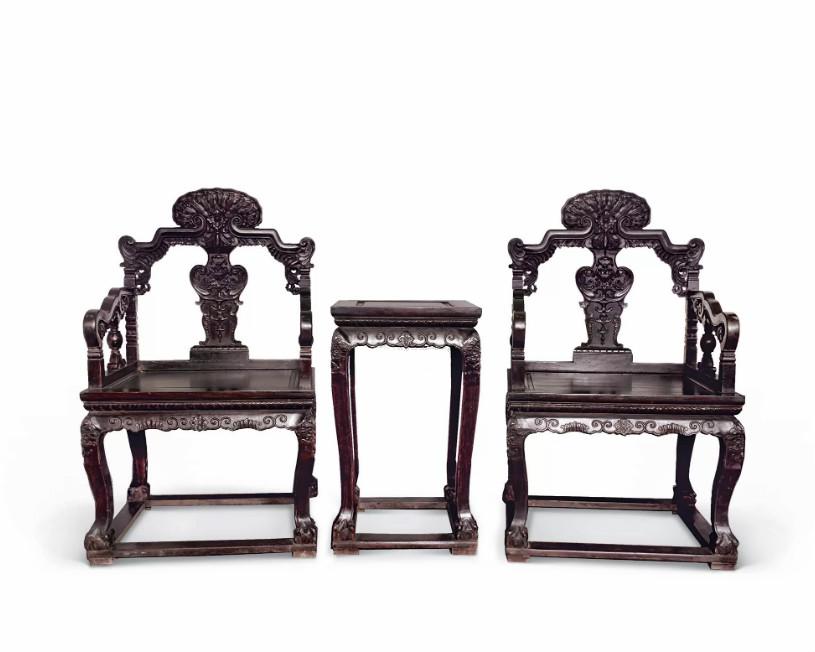 中国太师椅拍卖榜第18名 民国 红木太师椅两椅一几
