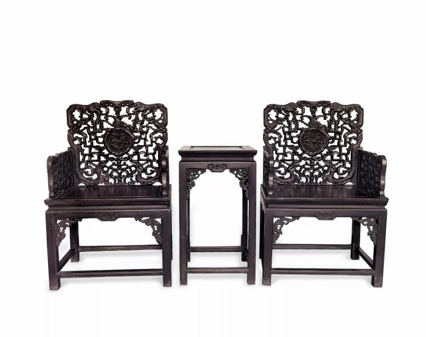 中国太师椅拍卖榜第22名 透雕螭龙纹太师椅 (一对配几)