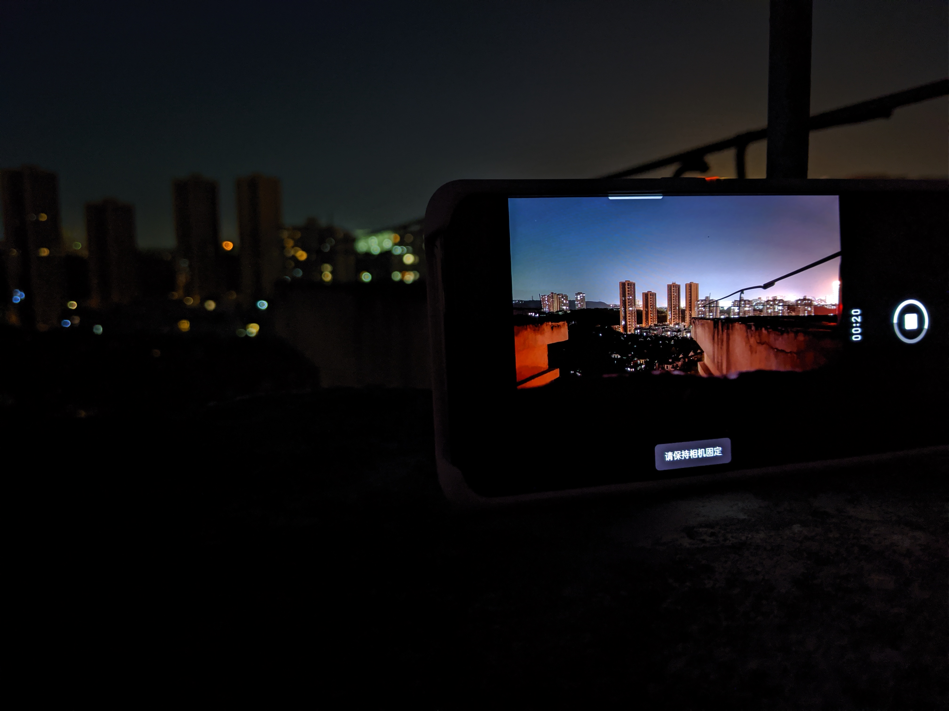 因此如果想要借助这个模式获得更好的夜景照片,我们首先需要在切换至夜视模式后将手机进行固定。这里最好的解决方案自然是三脚架,如果你没有三脚架,多加利用窗台、墙檐等地形对手机进行固定也能起到固定的效果,注意手机的跌落风险即可。