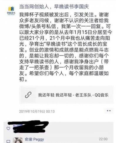 10月23日晚,他的妻子俞渝在朋友圈手撕李国庆,开篇就称要抓破他的脸,爆料的信息量巨大,堪称雷神之锤,锤锤致命: