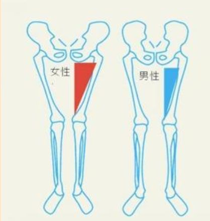 第三、女性天然的生理结构,相对于男性,女性自身的髂骨会更宽,根据生物力学来说,当骨盆更宽的时候,膝关节会更偏向于往里扣,此时由于膝关节的上内走就会导致股骨头的向下向外的膨出,此时髋部的轮廓形状就会发生改变,形成假髋。