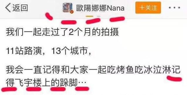 后来欧阳娜娜在感谢微博里,还专门提到了这一段。