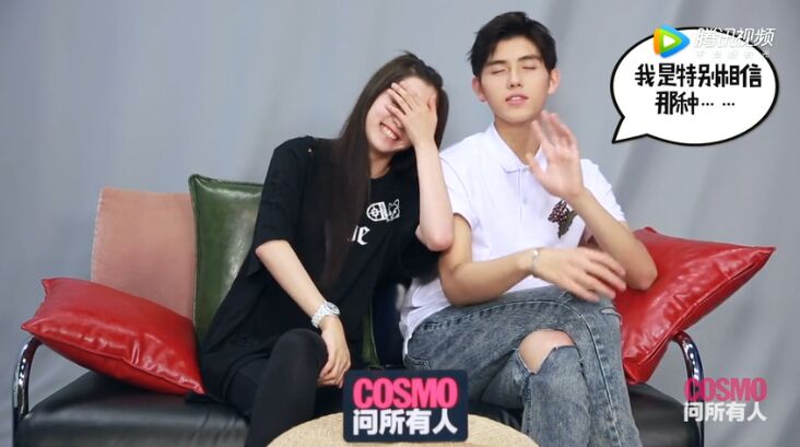 拍照时突然把陈飞宇的头摁过来,陈飞宇有点儿害羞地嘟嘴垂眼,欧阳娜娜的表情就好坦然。