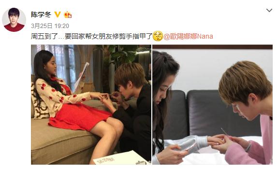 豆瓣评分只有2.6的那部戏,虽然和陈学冬摆明了就是在宣传戏,可是两个人的关系真的就是好到了陈学冬为欧阳娜娜修指甲的程度啊。