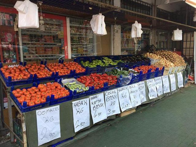 (伊斯坦布尔街头的菜铺,1里拉约合2元人民币)