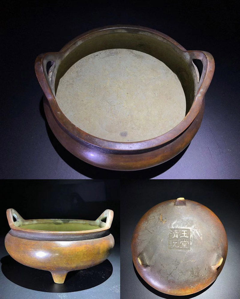 可以说,大凡清朝早期及其以前的“玉堂清玩”款识炉,铜质金良,品质皆佳,其后制器,清中期也尚可,清后大都一般,各位在入手时需多加思量。