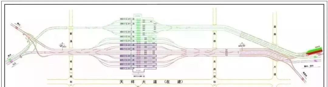 据了解,南昌东站位于南昌市青山湖区,车站高速场总规模按8台16线设计,预留站台2座和到发线3条,车站东侧预留城际铁路车场,车站北端昌景黄铁路方向别引入并设置立折疏解线1条,预留京九高铁引入条件;车站南端预留京九高铁引入条件、新建动车存场1处,近期规模存车线16条,预留动车运用所设置条件,新建综合维修工区1处。