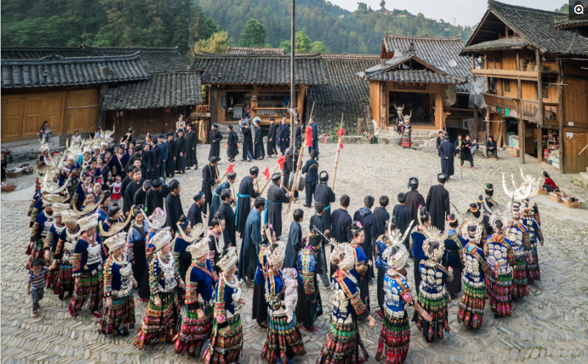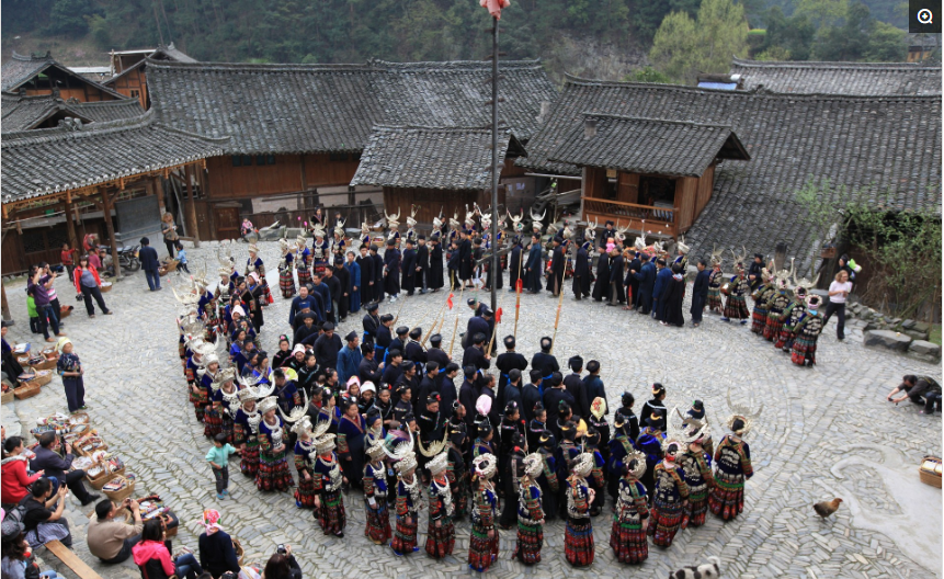 在苗寨中央的广场,还可以欣赏苗族特色的歌舞,他们穿上节日的盛装,跟随者音乐欢快起舞,场面非常壮观。