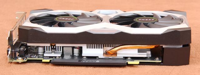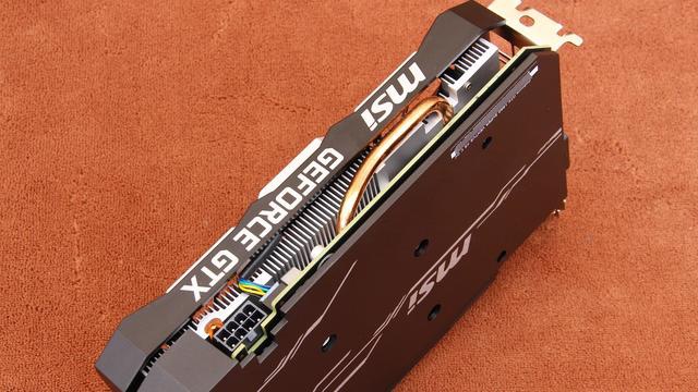 背板基本没有变化,MSI LOGO与白色线条的存在,呈现出黑白相间的感受,背板的加持,在提高颜值的同时避免了PCB背面的积灰,也加强了显卡的PCB强度。整张卡的重量很轻,长度也不大,再加上有背板加持,故此不用担心PCB会压弯的情况。采用的是微星自家非常成熟的散热系统,虽然风扇取消了智能启停,但是智能温控是完美保留了,散热效率和噪音控制都很完美了。