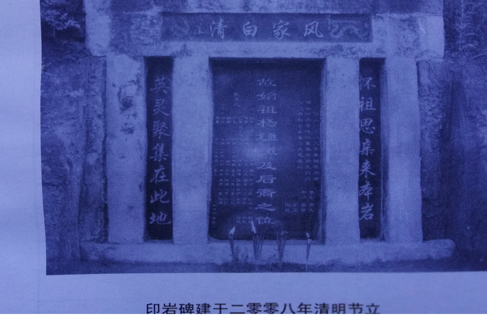 在清明会上,杨启光建议修建纪念碑,鉴于大部分祖坟地被开垦作建设和农业用地了。一是为响应政府殡葬改革号召,不占地埋人,实施火化以节省土地资源。二是为提倡文明祭祀,方便集中纪念先祖和故者,敬老爱老,继承和发扬先辈的优良传统,为此特立印岩碑永作纪念。