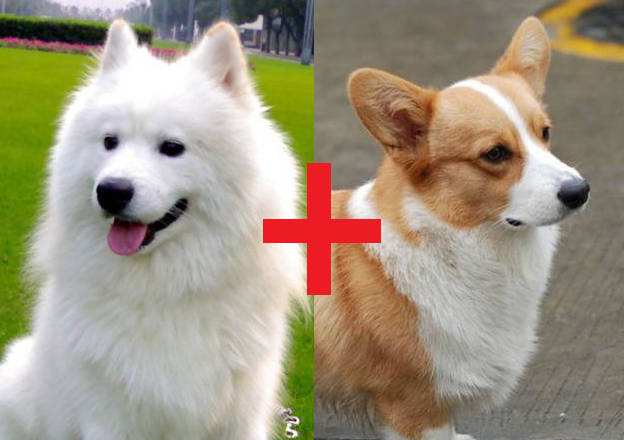 微笑天使萨摩耶宝宝遇到短腿柯基