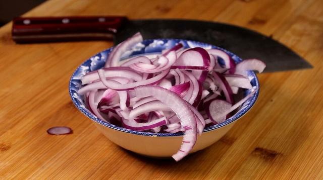 2、切配菜:大葱切成片,姜切成丝,香菇去根,然后切成片,将洋葱切成丝