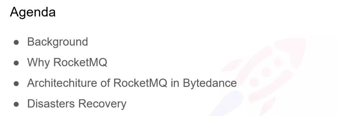 本篇文章整理自今日头条的沈辉在 RocketMQ 开发者沙龙中的演讲,主要和大家分享一下,RocketMQ 在微服务架构下的实践和容灾体系建设。沈辉是今日头条的架构师,主要负责 RocketMQ 在头条的落地以及架构设计,参与消息系统的时间大概一年左右。