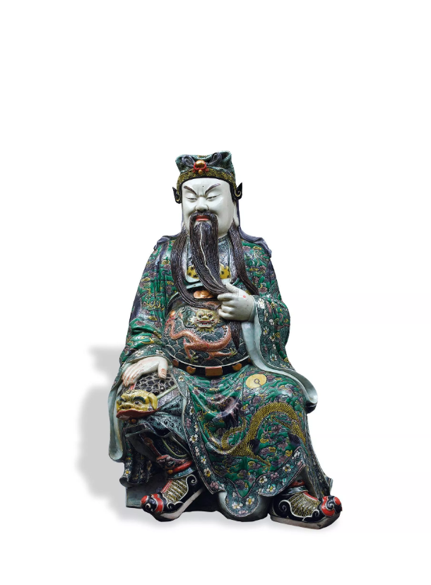 关公雕像第3名 清19世纪 素三彩关帝圣像