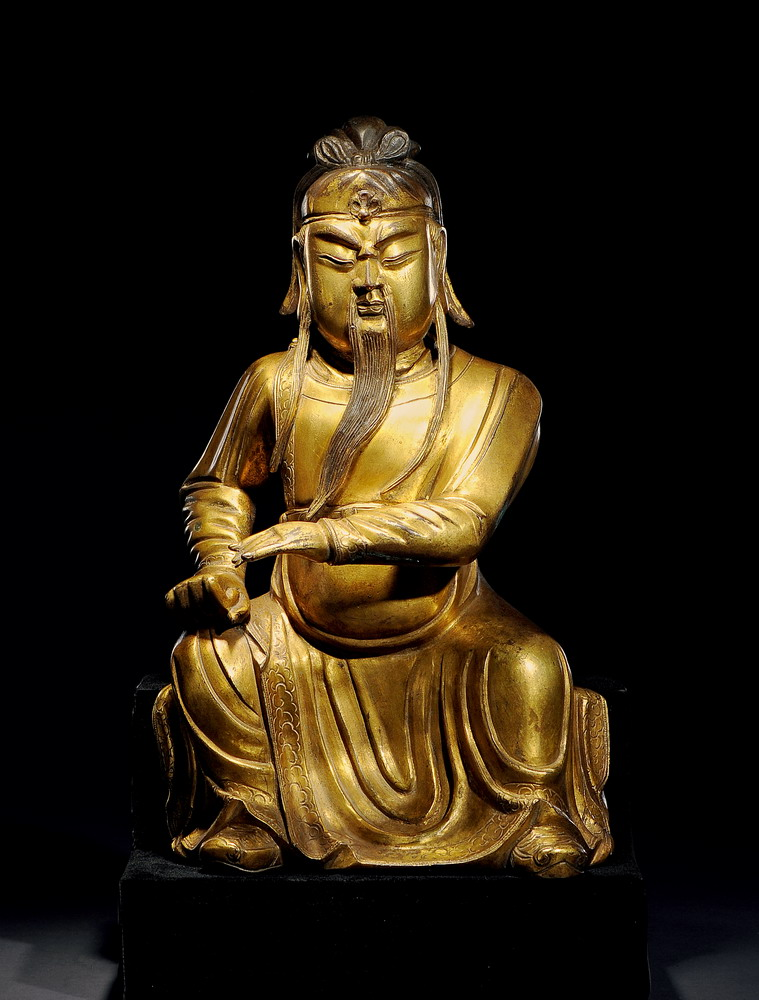 关公雕像第1名 明早期 御制漆金彩绘铜关帝坐像